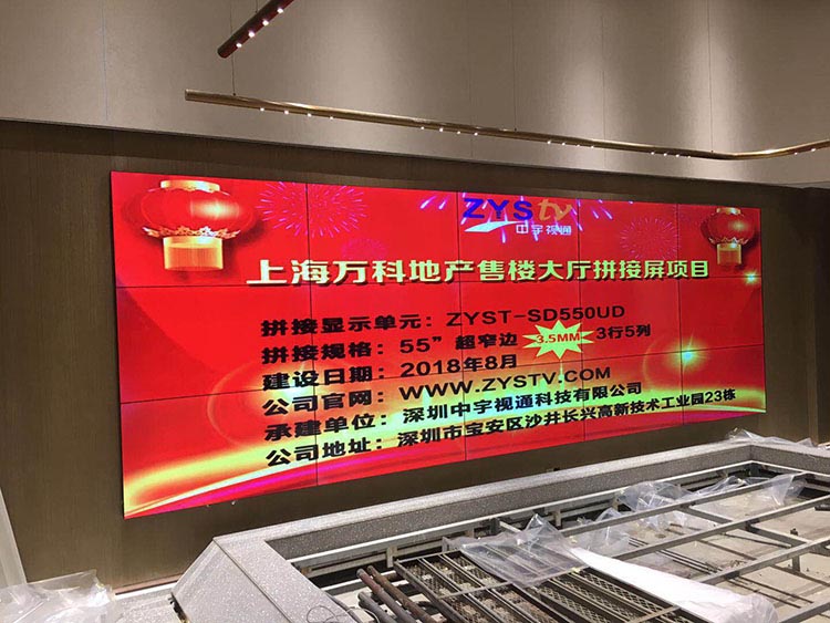 上海萬科地產售樓大廳55寸液晶拼接屏項目選擇中宇視通科技的拼接方案,項目安裝調試完成并且順利驗收,中宇視通科技全體職工從深圳發來賀電!
