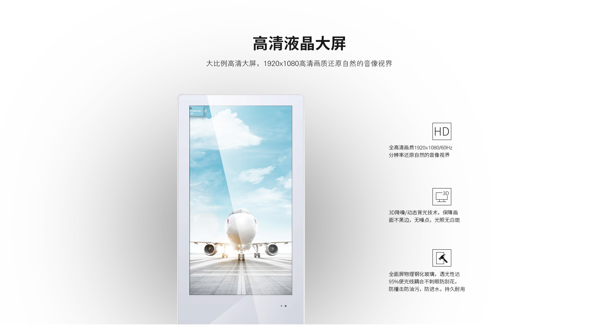 多媒體播放功能:15.6寸電梯廣告機(jī)可以實(shí)現(xiàn)數(shù)字化多媒體播放,可以播放音頻、視頻、圖片、文檔等一系列媒體文件。支持主流的(MP3,APE,F(xiàn)LAC,AAC,OGG)等音頻格式。同時支持多種格式(MKV,MPEG4,AVI,F(xiàn)LV,MOV,RMVB,WMA)視頻播放,還支持各種圖片文檔類(JPEG, BMP, PNG,GIF )的廣告播放功能。
