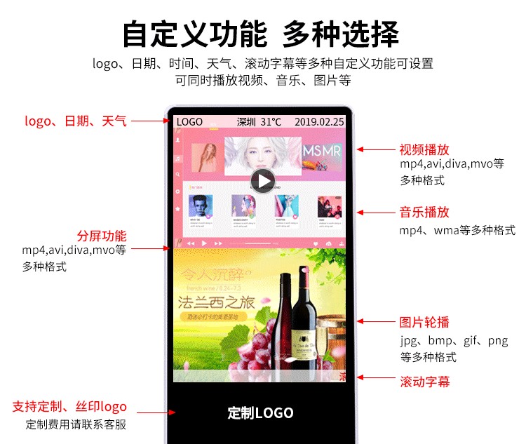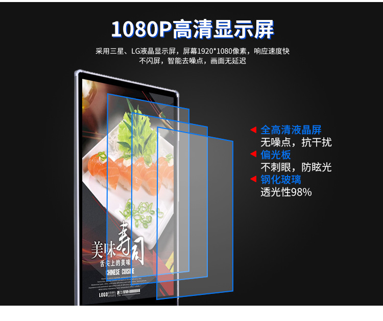 原裝進口品牌LED高清顯示面板制作,畫質(zhì)顯示更清晰,功耗更低。