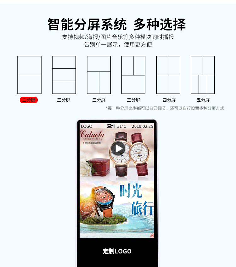 工業(yè)級電源系統(tǒng),自帶恒溫散熱系統(tǒng),可滿足24*7連續(xù)不間斷開機播放。